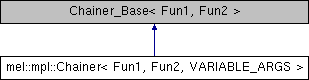 Inheritance diagram for mel::mpl::Chainer< Fun1, Fun2, VARIABLE_ARGS >: